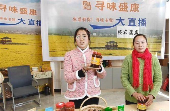 “大家好,欢迎大家来到寻味盛康的直播间,我是今天的主播乡野云妹,云妹今天手里拿的这一款,是我们盛康镇的豆瓣酱,它是一款非遗的产品。”
