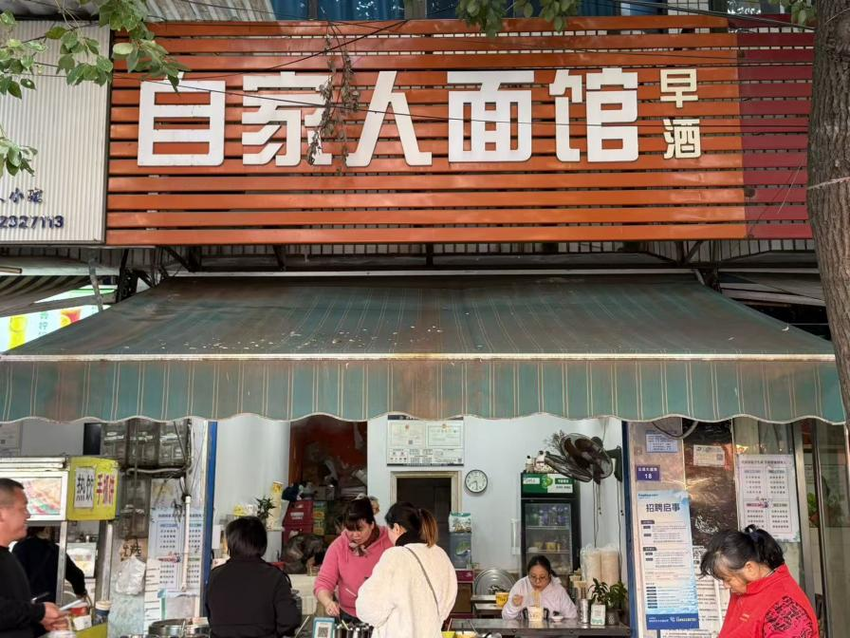 位于正昌大道东18号的“自家人面馆”,则以亲民价格和地道口味圈粉邻里。店主曾开秀注重食材新鲜,牛杂选自本地屠宰场鲜货,肉丝用土猪肉现切,素面汤底则用菌菇、骨汤熬制,分量足、价格实,最低4元就能吃饱,贴合当地消费习惯。