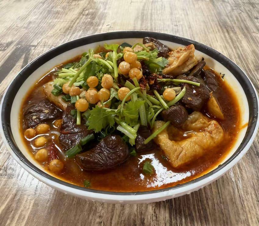 走进位于永兴街南1号的海涛面馆,大骨熬制的汤香扑面而来。店主周海涛多年如一日,坚持凌晨三点起灶,选用当天现宰的猪筒骨、牛骨与老母鸡,搭配简单香料,小火慢炖四五个小时,直到汤汁呈奶白色,入口醇厚不腻,带着食材本身的鲜甜。他家的汤底从不用速溶调料,全凭“鲜材慢炖”的传统工艺,是许多老顾客记忆中的“老味道”。