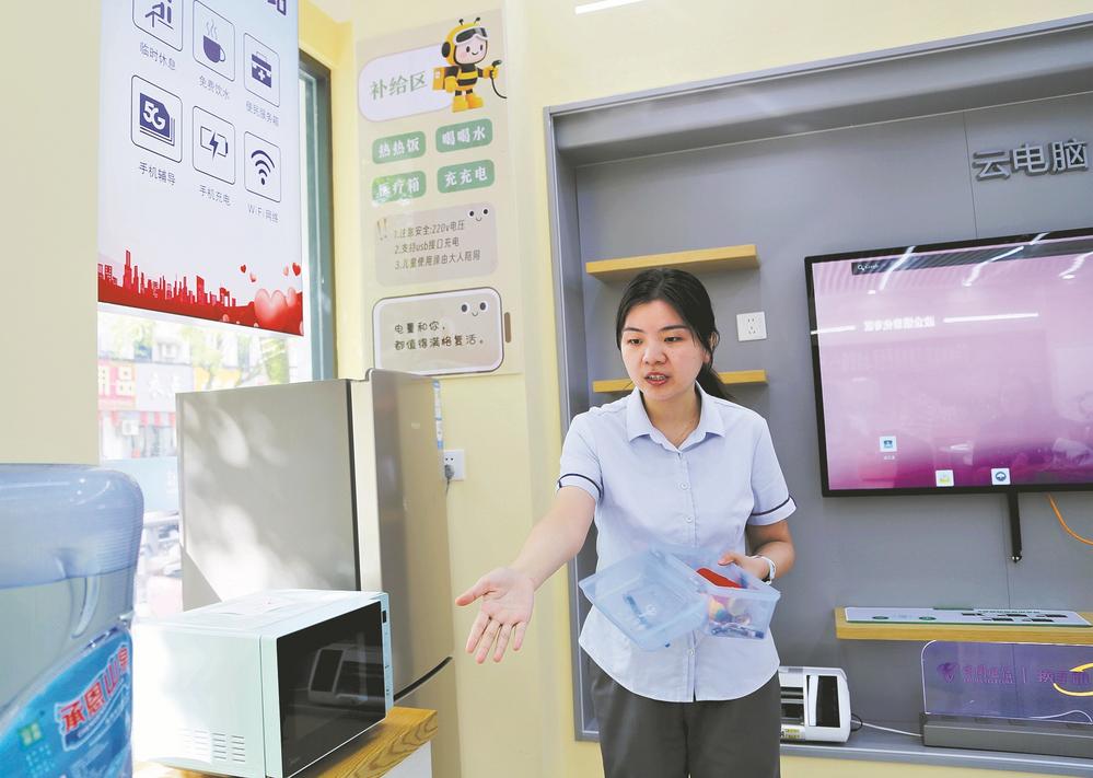 一名外卖员感叹:“过去送完外卖,只能随便找个地方凑合吃口饭。现在不仅能吃上实惠的热乎饭,还能给电动车充电。”