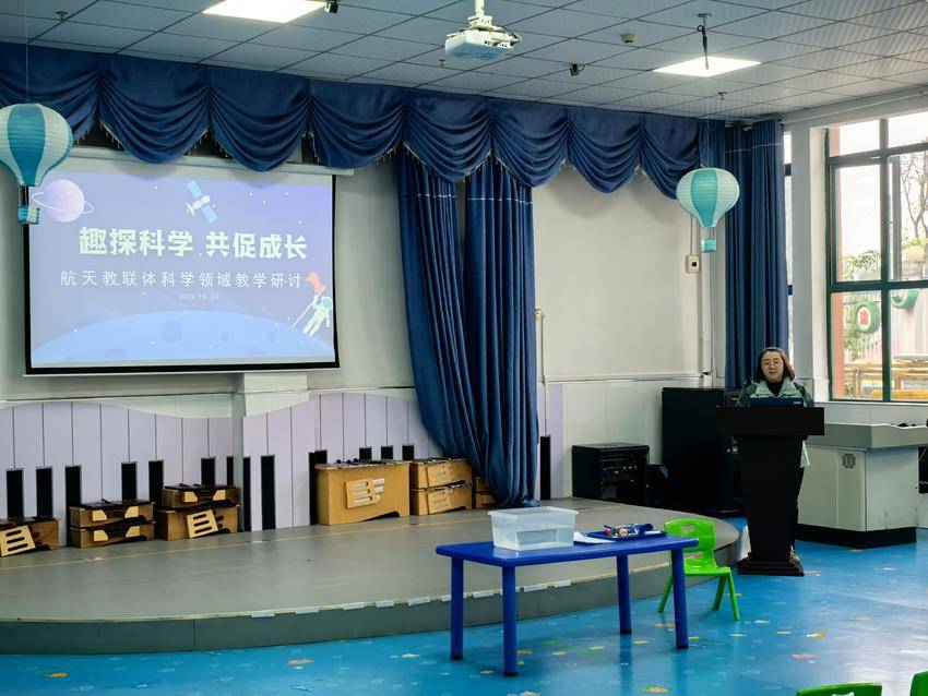 湖北日报客户端讯(通讯员陈蓉、刘彦村)秋意渐浓,教研正酣,为深入贯彻《3-6 岁儿童学习与发展指南》五大领域中科学领域的教育目标,进一步落实《远安县幼儿园2025—2026学年度教研计划》工作要求,为推动教联体内各园所教学资源共享、教研能力协同提升,近日,远安县航天幼儿园教联体开展了以“趣探科学,共促成长”为主题的科学领域“一课三研”主题教研活动。本次活动聚焦幼儿科学探究核心素养,激发教师深入研究教学,提高课堂教学质量,为全体教师提供了一次深入交流、共同成长的专业平台。
