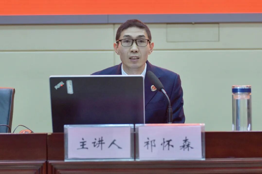 院分党组成员、纪检组长祁怀森以《严格遵守“三个规定” 筑牢司法廉洁防线》为题作专题宣讲。祁怀森带领大家重温了“三个规定”的相关内容,详细阐释了严格遵守“三个规定”各项禁止性要求与规范记录填报的要点,系统说明了如何科学甄别、精准核查、分类处置相关情况,并对责任追究条款进行了深入解读,进一步提升了干警对“三个规定”的理解深度和执行力度。