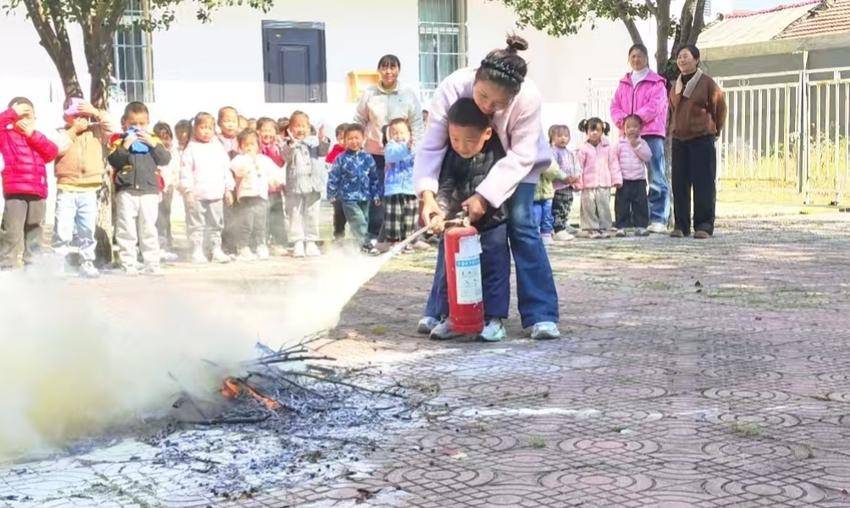 消防地震演练结束后,幼儿园还组织了模拟灭火活动。门卫叔叔为师生们展示了消防器材的使用方法,并邀请部分师生亲自体验了使用灭火器灭火的过程。通过实际操作,师生们对消防器材的使用有了更直观的认识,进一步提高了他们的消防安全意识和自防自救能力。