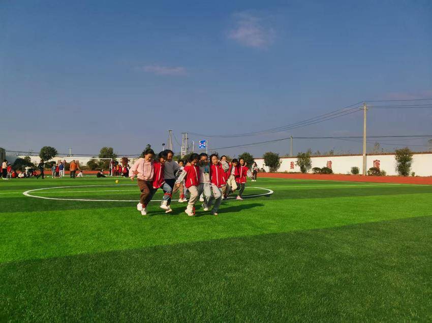 趣味运动中,孩子们一扫竞赛紧张情绪和失利的阴霾,将活泼天性展露无遗。球掉了捡起来继续、摔倒了爬起来跟上,全无比赛的紧张,更多的是参与的快乐,整个操场一片欢腾。