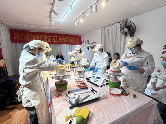 为进一步弘扬劳模精神、工匠精神,近日,由市总工会主办,新时代蛋糕店、儒学社区承办的“2025年新时代蛋糕店工会劳动技能大赛”在热烈的氛围中拉开帷幕。本次活动特邀古楼街道一级主任科员江红燕、古楼街道工会宣传干事徐雨婷、社区宣传干事以及在烘焙行业深耕20余年的三位行业代表。来自新时代的10位裱花师同台竞技,为观众呈现了一场视觉与创意交织的盛宴。