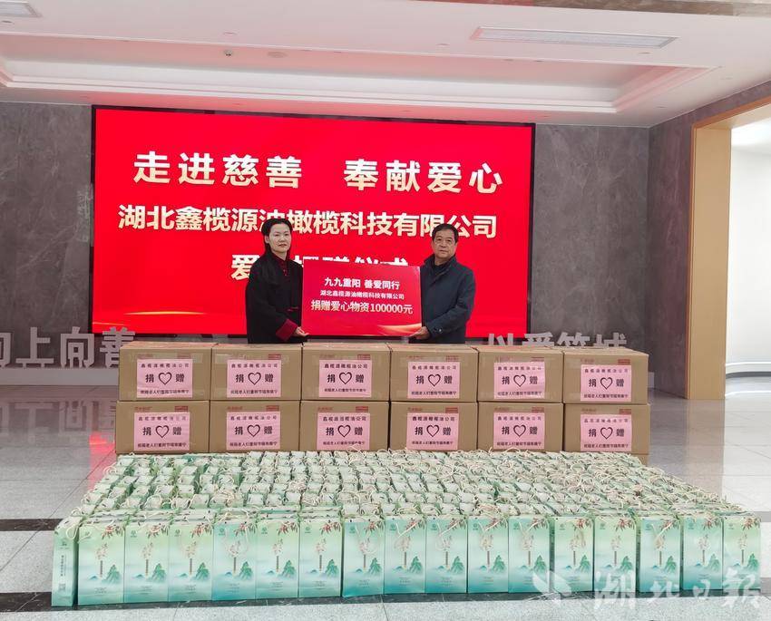 湖北日报客户端讯(通讯员杨靖惠、姜双双)菊颂金秋,情暖重阳。在重阳节来临之际,郧阳区工商联会员企业——湖北鑫榄源油橄榄科技有限公司积极践行社会责任,展现民营企业担当,于10月23日走进十堰市慈善总会,捐赠价值十万元的爱心物资,以实际行动弘扬中华民族尊老敬老的传统美德。