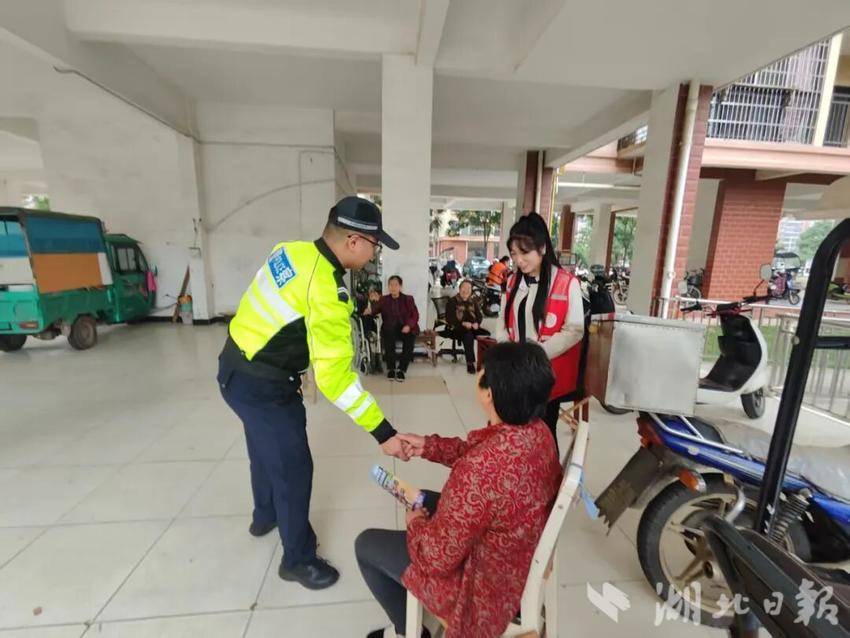 湖北日报客户端讯(通讯员吕慧芳)“阿姨,您看这个宣传册,过马路一定要走斑马线,等红绿灯时别着急……”近日,岳陂社区携手葛店交警大队,在岳陂小区里开展了一场接地气的交通安全宣传活动,把安全知识送到居民“家门口”,让大家在轻松氛围里学到实用干货。