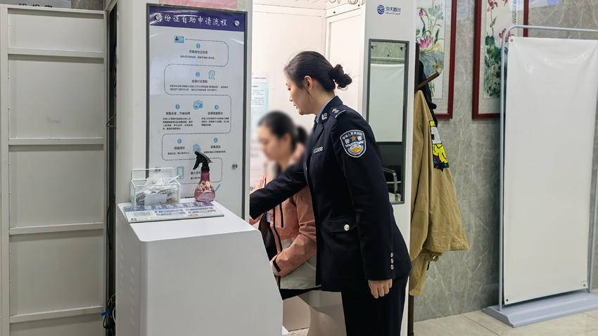 “当然了,不仅能看,还能自己拍呢。”张瑶随即引导许女士坐进一旁的身份证自助拍照机,“您整理好衣服和发型,眼睛看向镜头上方,就可以按下快门拍摄了。”