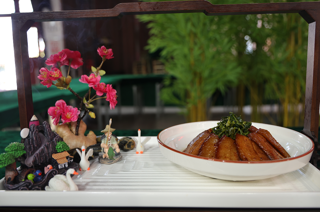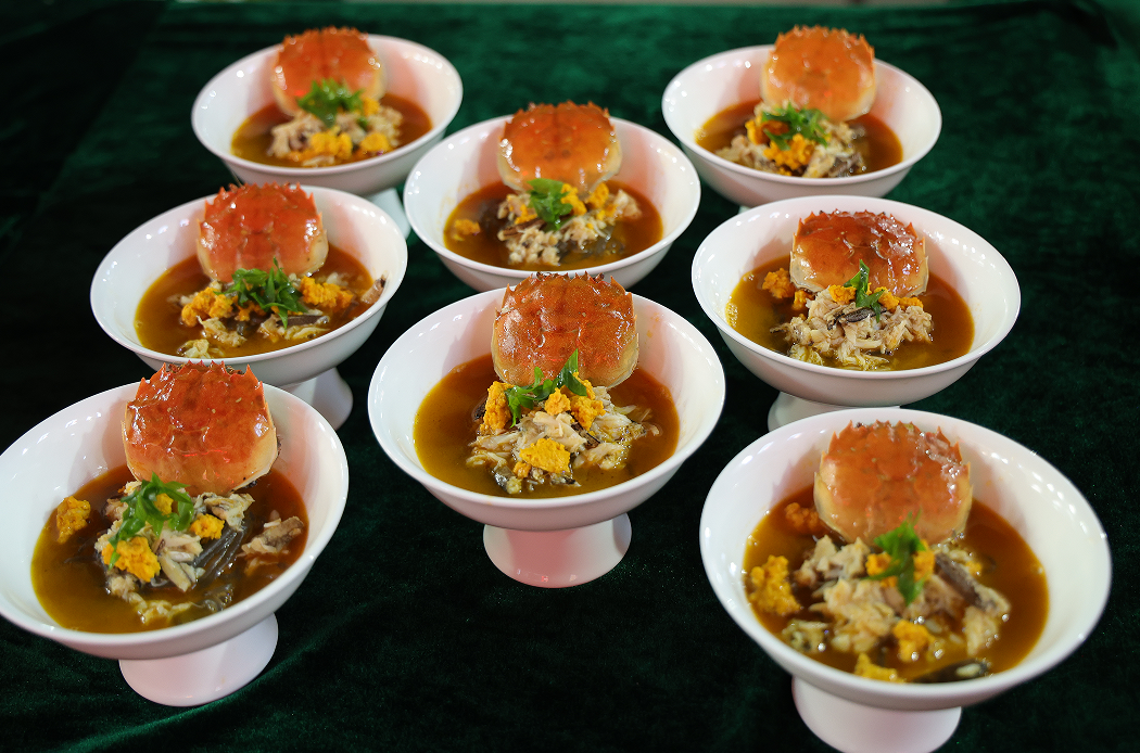 中国烹饪大师张彬:“现场能看到很多优秀作品,像《金沙河拆烩鱼头》《焖罐天台山牛肉》,都是厨师们最新研发的。从烹饪技艺到食材搭配,既体现了我们地方的美食特色,也展现了地标食材所呈现的独特风味。”