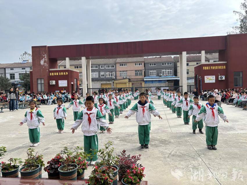 湖北日报客户端讯(通讯员冯玉娟、姚雪蓉)10月24日,钟祥市皇庄小学在雅行广场开展一至三年级“七彩阳光”广播体操比赛,以体育活动践行校园“雅行文化”。