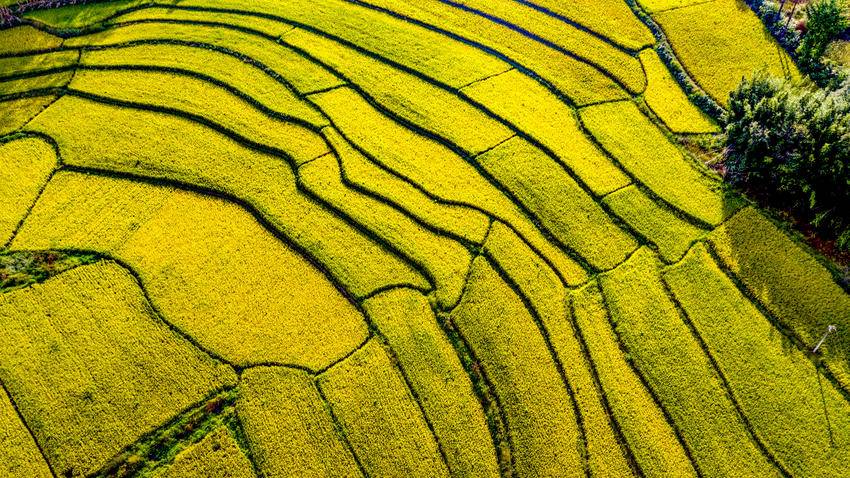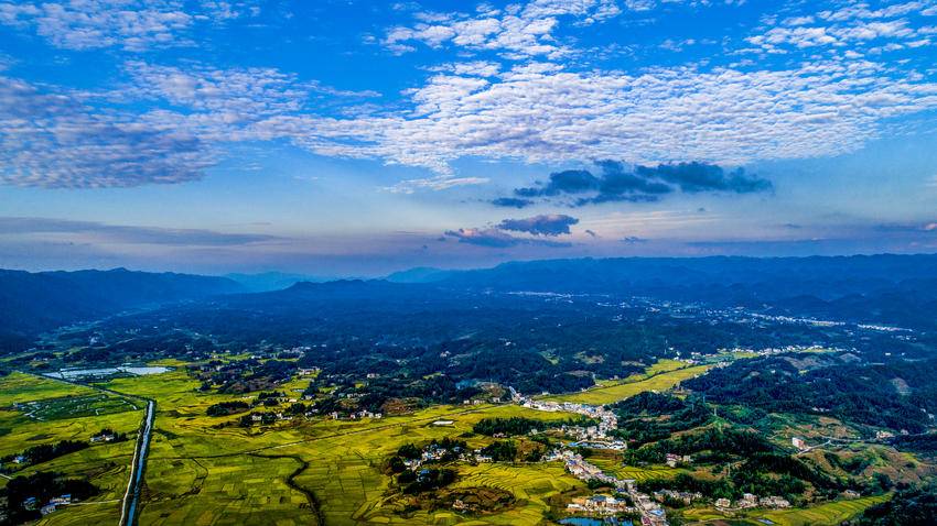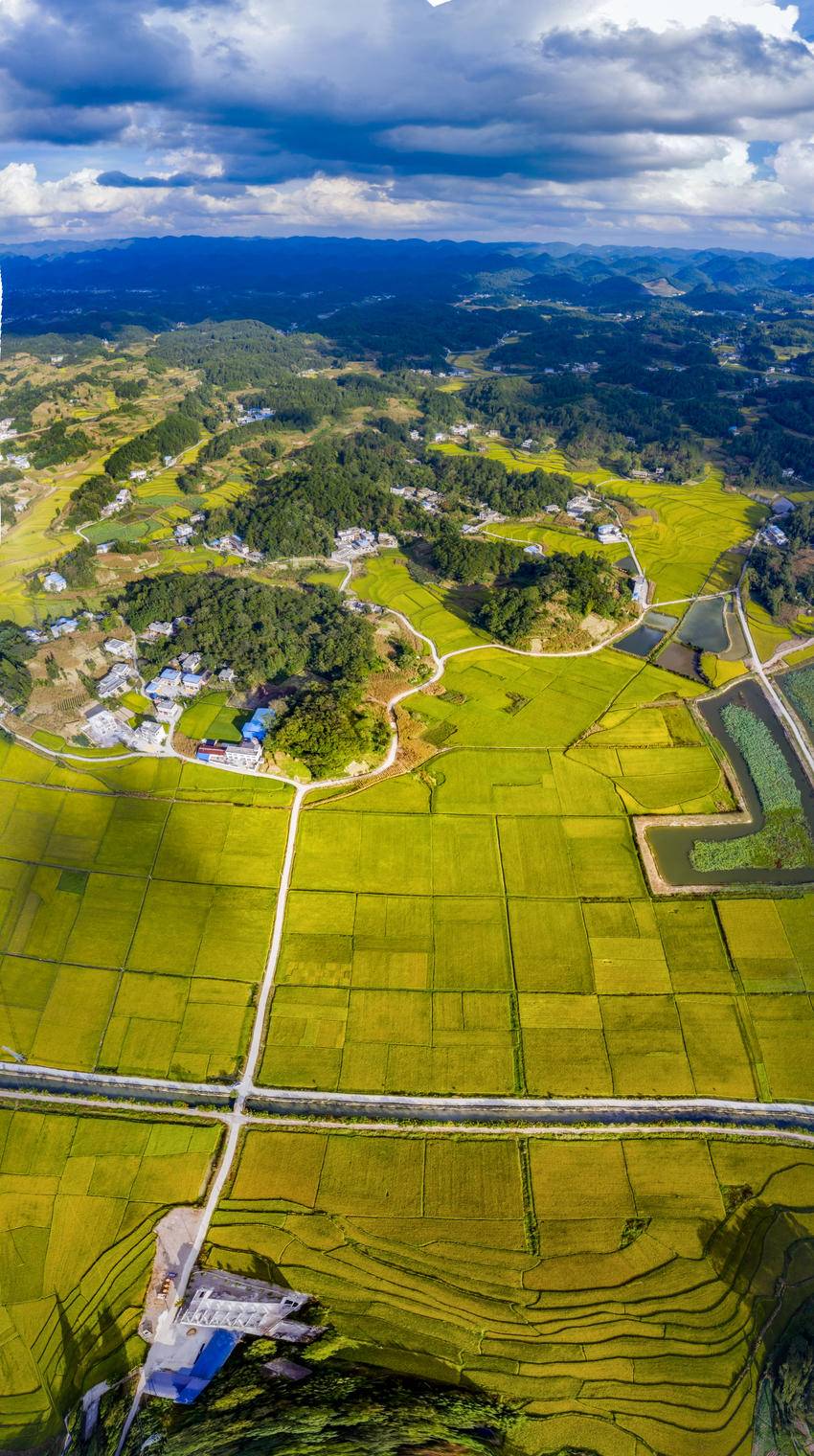 当风从齐岳山吹下来,带着山顶风电叶片转动的轻响时,我便知道,丰收要来了。先前还绿得沉甸甸的稻穗,忽然就染上了阳光的颜色,一株株、一垄垄,顺着田埂的曲线铺展开,像谁把碾碎的金子撒在了我身上。风一吹,稻浪就顺着地势起伏,从南坪的这头滚到那头,碰着田边的水渠,惊起几只啄食的麻雀,它们扑棱着翅膀,把“丰收啦”的消息,捎给了田埂上的农舍。