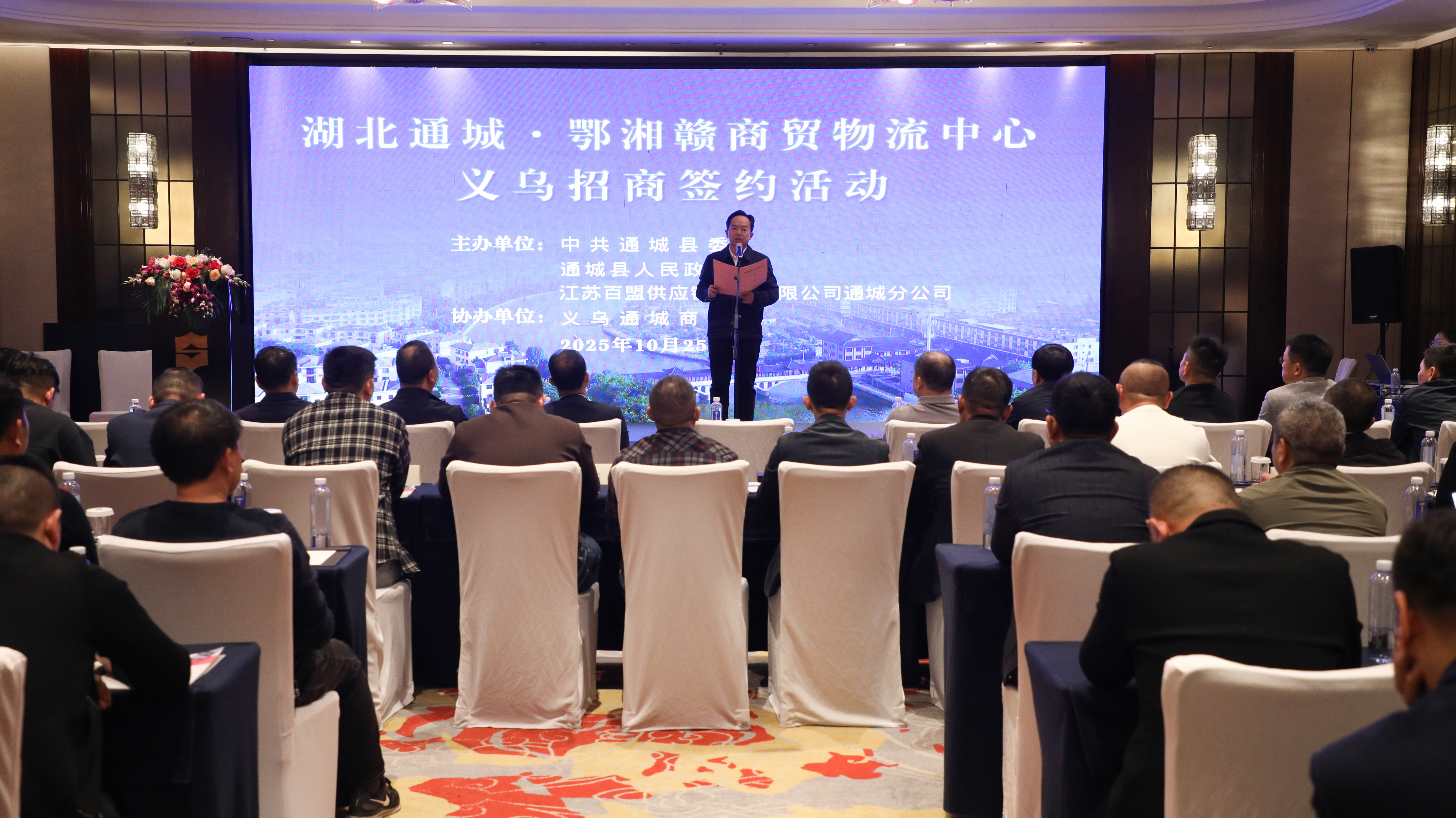 当天下午,湖北通城鄂湘赣商贸物流中心招商签约活动在浙江义乌举行,12家企业现场签约。黄建平出席签约活动并致辞,他表示,通城是一座通达之城、发展之城、梦想之城。当前,通城正坚定不移做大做强电子信息、新材料、生物医药三大优势产业,着力推动现代商贸、现代物流、文化旅游三大服务业专业化、高端化发展,全面构建现代化产业体系。12家企业的成功签约,将为鄂湘赣商贸物流中心建设提供强力支撑,也将推动全县商贸物流产业链全面提质升级。诚挚邀请各位企业家朋友到通城走一走、看一看,亲身感受通城的活力与魅力。通城县委、县政府将以最优的政策、最好的服务、最佳的环境,全力保障签约项目早落地、早达效,努力让每一位投资者在通城都能安心发展、放心创业、舒心生活。