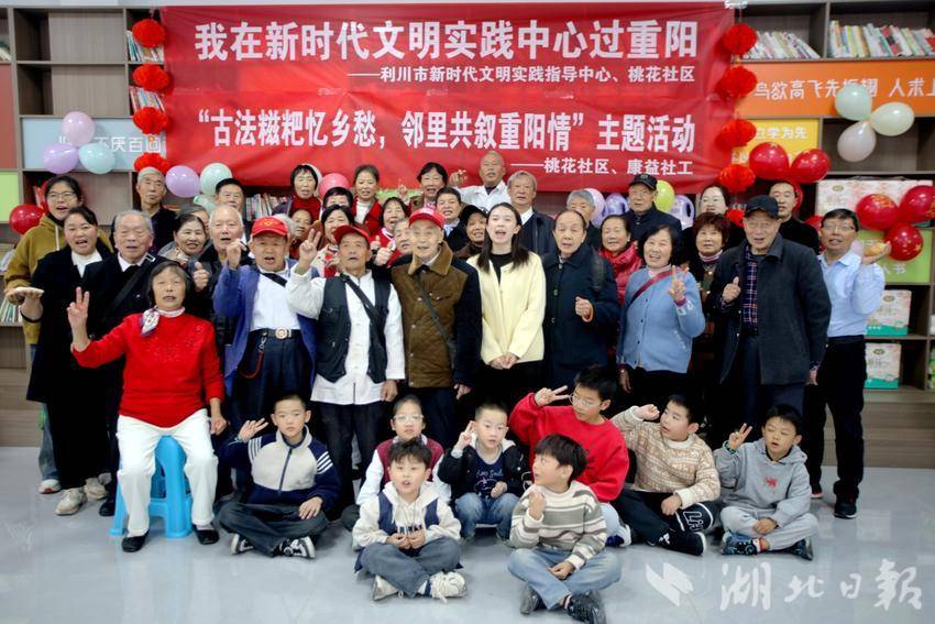 湖北日报客户端(通讯员胡安民、杨冬华)金秋送爽,丹桂飘香。10月26日下午,由利川市桃花社区、市新时代文明实践中心、康益社工共同举办的“古法糍粑忆乡愁,邻里共叙重阳情”主题活动在桃花社区开展,节日里为老人们送去最真挚的关怀。