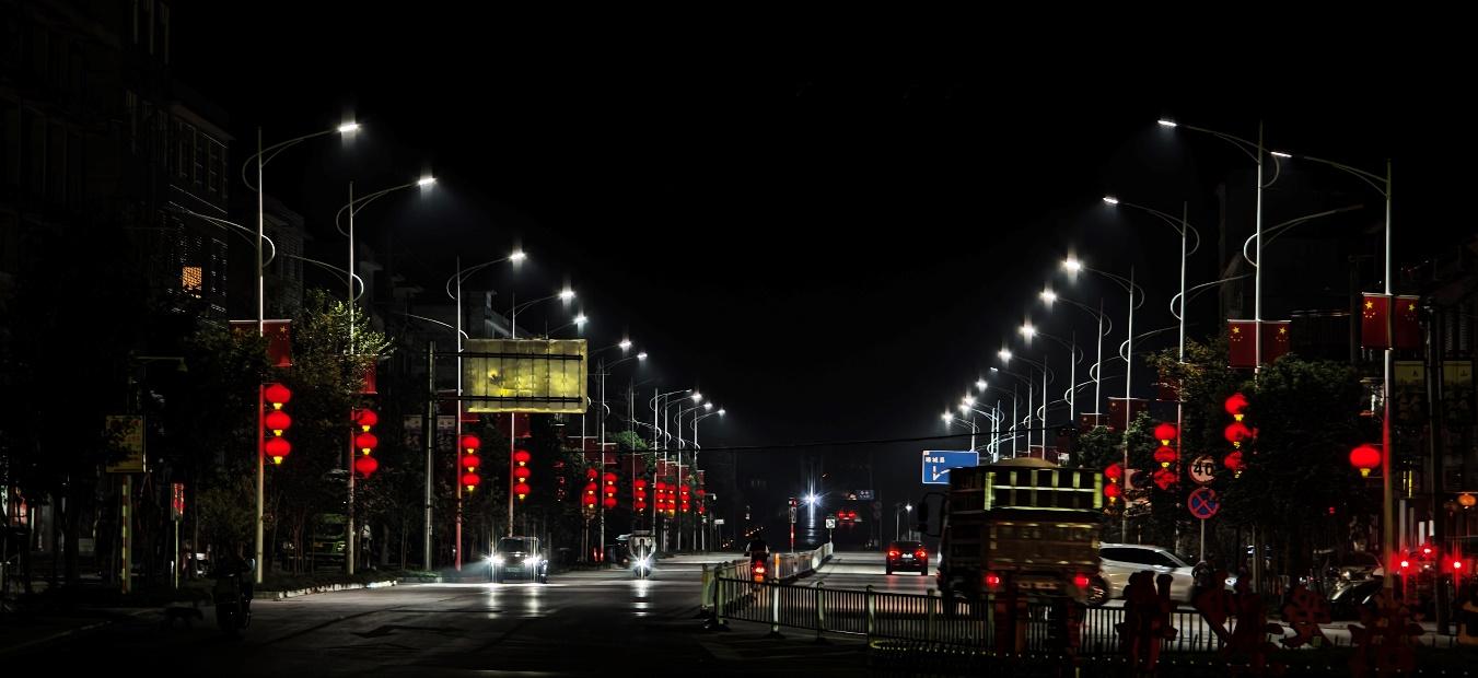 集镇的变化藏在细节里:宽阔的道路让通行更顺畅,明亮的路灯驱散夜晚的昏暗,整洁的垃圾桶守护着环境的清爽。
