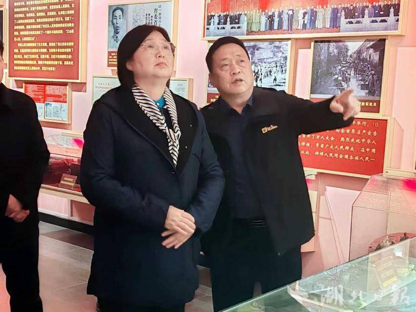 王玲一行仔细参观馆内陈列的历史文物、图片资料,认真聆听革命先辈在这片土地上的斗争故事,深切感悟大洪山革命根据地的红色底蕴与精神力量。