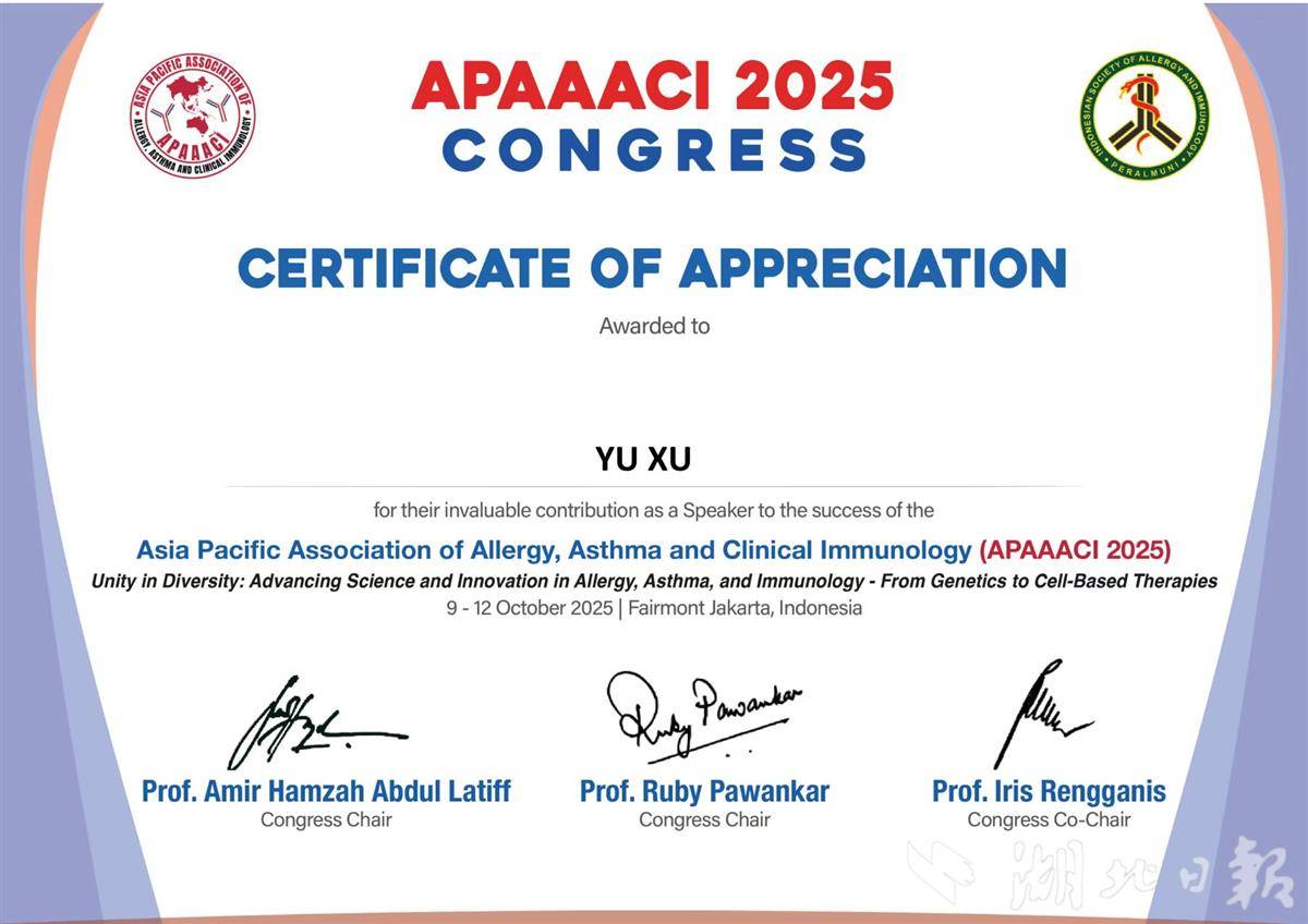 湖北日报讯(记者曾莉、通讯员刘禹、谭路)10月9日-12日,武汉大学人民医院(湖北省人民医院)耳鼻咽喉头颈外科中心许昱教授团队研发的“扁桃体注射免疫治疗(ITIT)”新技术,在印度尼西亚雅加达举行的亚太过敏、哮喘和临床免疫学会国际大会(APAAACI)上亮相,引发全球学界聚焦,为国际过敏治疗领域提供“中国方案”。