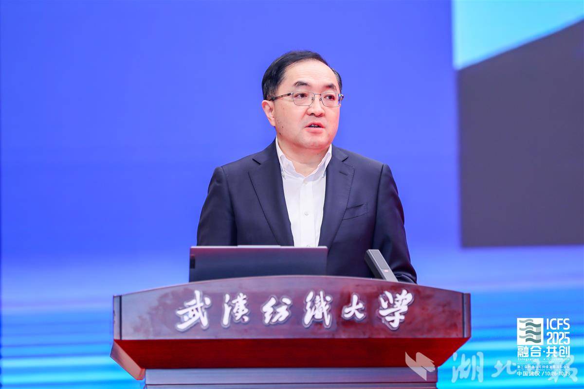 中国工程院院士、武汉纺织大学党委书记徐卫林教授在讲话中聚焦纺织服装产业的时尚与可持续发展。