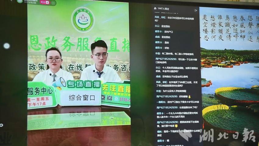 “我们每周一、三、五下午3点,在宣恩政务服务抖音直播间准时开播,目前累计直播71场,近50万人次观看,共解决问题12000余件。”宣恩县政务服务和大数据管理局政务服务股工作人员唐宇介绍道。