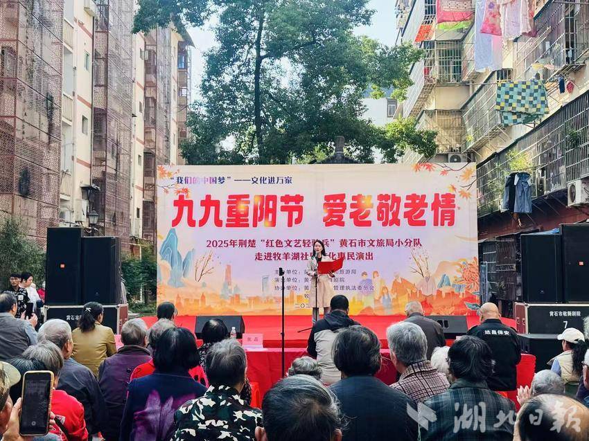 湖北日报客户端讯(通讯员杨港)为弘扬中华民族尊老、敬老、爱老、助老的传统美德,丰富社区文化生活,营造欢乐祥和的节日氛围,10月28日,西塞山区牧羊湖社区联合黄石市歌舞剧院、牧羊湖社区康养中心开展“九九重阳节 爱老敬老情”文艺汇演活动。