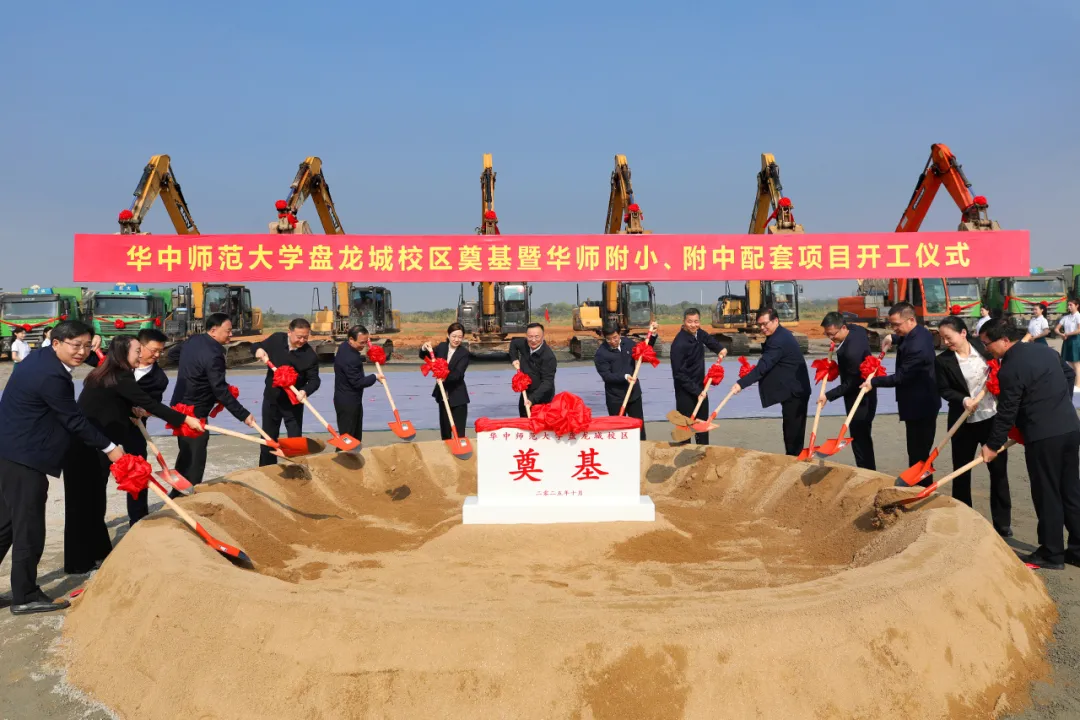 华中师范大学党委书记夏立新,校长彭双阶等;黄陂区委书记何建文,区长张劲,区人大常委会主任陈军,区政协主席熊定萍;武汉市城投党委书记、董事长余新民,总经理盛华等校地领导共同为华师盘龙城校区奠基。