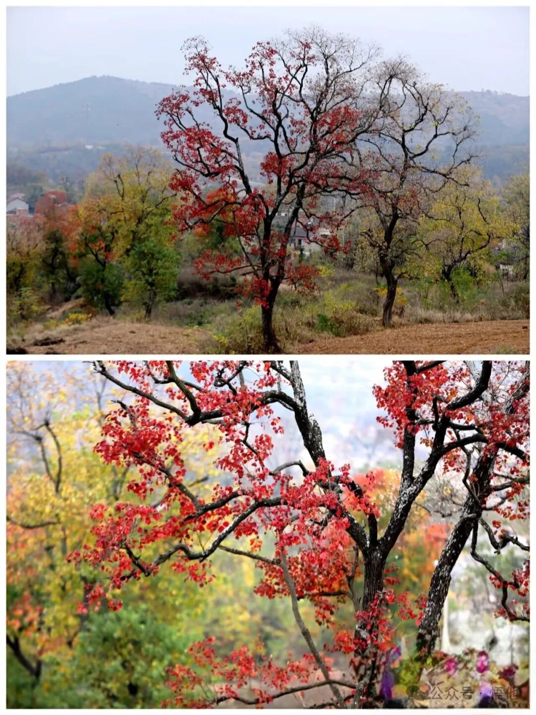第三个是彭店乡“乌桕梯田” ,这里的乌桕树沿着梯田的轮廓分布,秋冬季节梯田里虽然没有水稻,但褐色的田埂与红色的乌桕树形成鲜明对比,线条感十足。建议在下午3点后过来,此时阳光斜照在梯田上,能拍出“明暗交错”的层次感,站在梯田高处,张开双臂拍一张“背影照”,背景是层层叠叠的红叶与梯田,瞬间有种“承包整片秋日”的感觉。「亲子家庭:一场“边走边学”的秋日自然课」带娃来大悟看乌桕,绝不是“单纯看红叶”,而是一场能让孩子“放下手机、亲近自然”的户外课堂。可以从四姑镇出发,沿着“乌桕观光路”自驾,遇到好看的乌桕林就停下来,让孩子捡几片不同颜色的乌桕叶——翠绿的、鹅黄的、橙红的,教孩子观察“叶子为什么会变色”,还能一起数叶子的“锯齿边”,感受自然的细节。走到北山村的“乌桕古树旁”,可以给孩子讲“老乌桕树的故事”,比如这棵树已经活了上百年,见证了村里一代又一代人的成长,让孩子对“生命”有更直观的认知。如果孩子精力旺盛,还可以带他走一段“浅山步道”,步道难度很低,全程都是平缓的土路,沿途能看到村民种的红薯、萝卜,孩子可以认识“农作物长什么样”,累了就坐在路边的石头上,吃一块提前准备的小蛋糕,听风吹过红叶的声音,这种“慢下来的亲子时光”,比在游乐场里玩更有意义。另外,大悟的村落里还能看到“乌桕籽”——秋冬季节,乌桕树的叶子落了,枝头会挂着一串串白色的“小灯笼”,这就是乌桕籽。可以摘几颗(注意不要多摘,保护树木)给孩子看,告诉他们“以前没有蜡烛的时候,人们会用乌桕籽榨油做灯油”,让孩子感受“植物的用处”,这样的“自然教育”,比书本上的知识更生动。