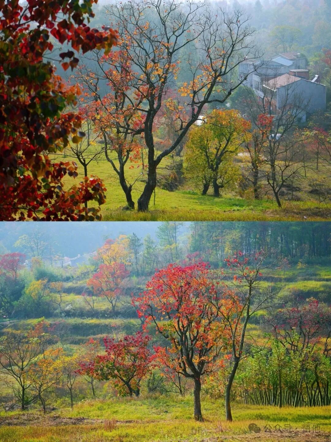 ⏰ 最佳观赏时间:11月上旬到11月下旬,错过等一年大悟乌桕的红叶期很短,只有1个月左右,每年11月上旬,乌桕树开始慢慢变色,11月中旬到下旬是“最佳观赏期”,此时叶子大部分变成橙红、深红,色彩最浓郁;如果遇到降温,叶子会落得更快,所以建议提前关注天气预报,尽量选晴天去,不仅拍照好看,体感也更舒适。
