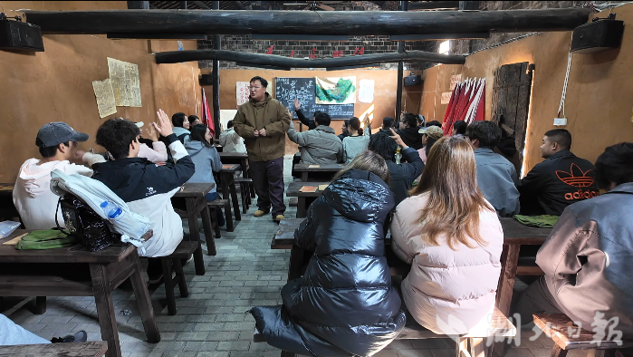 彩排现场,演员们在河西村村口再现转移前的动员场景,演绎新四军与村民的对话。每一段表演结束,大家便围聚在指导老师身边,结合实地场景调整细节:有人根据院落空间调整肢体动作幅度,有人依据户外声场变化优化台词、提高音量,力求让表演与河西村的历史氛围深度契合,精准传递角色情感。