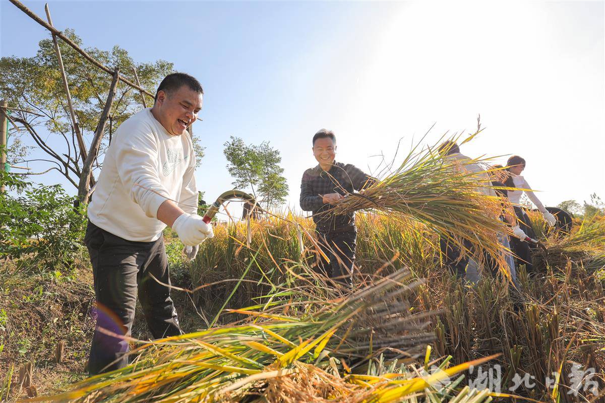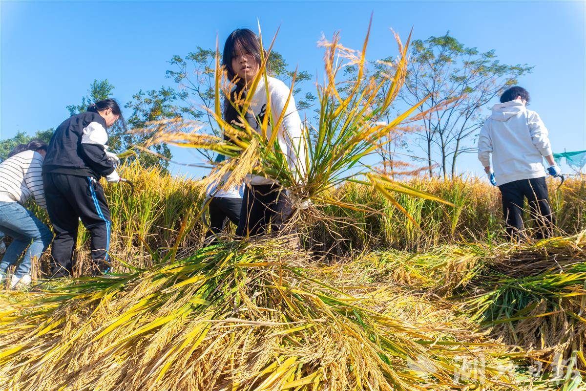 “这不仅是一次劳动体验,更是一次露天课堂,如何弯腰收割不伤手、如何捆扎稻谷不易散、水稻怎么割才利于下一次播种……这些都是平时学不到的宝贵经验。”2024级合成生物学专业学生谭可馨笑着说,额角的汗珠顺着脸颊滑落,她却顾不上擦,“我们这些大学生应该经常参与这种‘接地气’的实践活动,让自己的科研成果长在祖国大地上。”