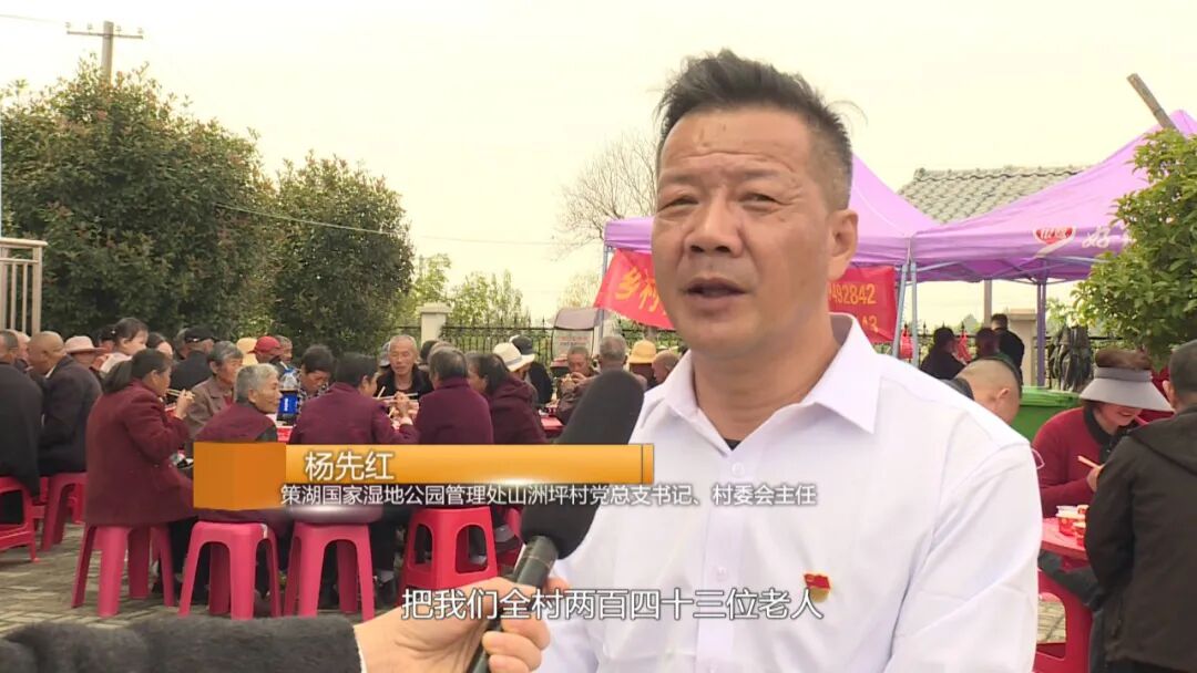 策湖国家湿地公园管理处山洲坪村党总支书记、村委会主任 杨先红:我们山洲坪村新时代文明实践站把全村两百四十三位老人邀请来参加尊老爱老重阳节的活动,营造了尊老爱老的浓厚氛围。