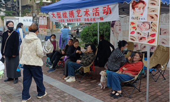 时尚体验区域设置的纹眉、点痣,为爱美的阿姨们提供了现代美容资讯,让她们在享受生活的同时,也能追求美丽与自信,展现了新时代长者积极向上的精神风貌。