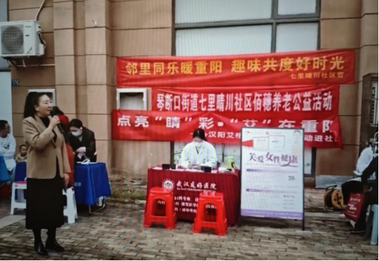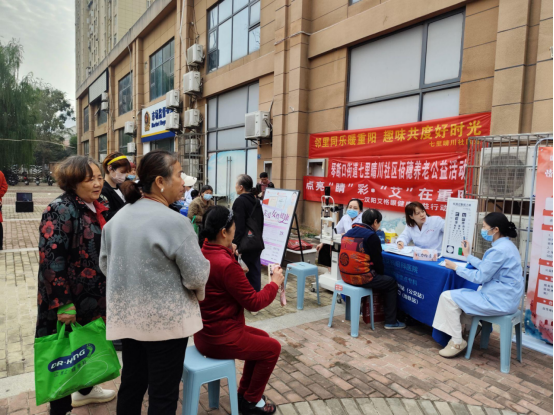 活动中的健康义诊区,汉阳医院为老人们提供免费的血压、血糖测量服务以及健康咨询,医护人员耐心解答各种健康问题,并传递科学的养生知识。优益佳口腔的医生们为大家进行了细致的牙齿检查,同时普及日常口腔保健知识。艾格眼科的医护人员运用专业设备,开展老年常见眼病的筛查与科普工作,助力大家尽早发现潜在的眼部问题。