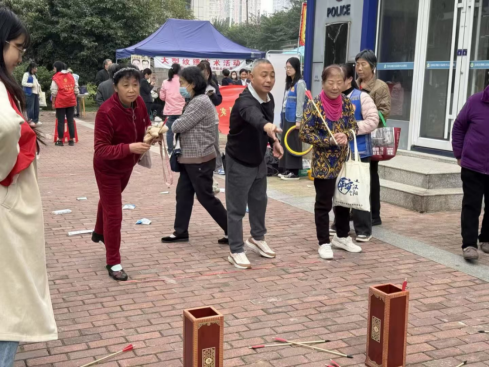 为增添节日乐趣,设置了充满传统与现代趣味的游戏区,投壶、套圈与钓杯子等传统游戏,勾起了许多老人的童年回忆,大家跃跃欲试,全神贯注的参加活动并获得奖品,老人们都兴奋不已,现场处处发出阵阵喝彩声,气氛热烈。