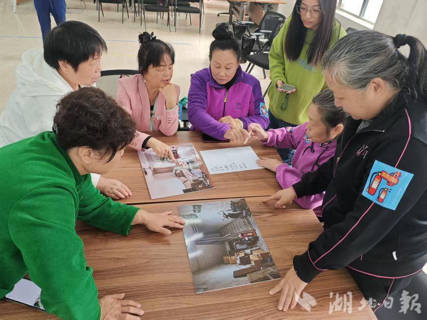 核心互动环节更是让老人们“过足瘾”。“隐患大搜查”桌面游戏区,公共楼道、家庭客厅实景图铺满了桌面,老人们化身“火患侦探”,5分钟内揪出电动车飞线充电、纸箱堵通道等10余处隐患;隔壁“灭火器步骤翻牌”区,大家争分夺秒学习“提拔握压”四步法,边玩边记,效果显著。