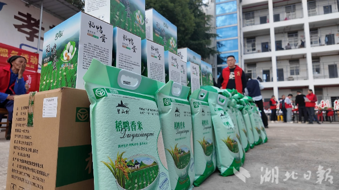 活动中,爱心企业代表带着经严格筛选的稻鸭香米等生活物资来到现场,精准对接老人日常生活需求。