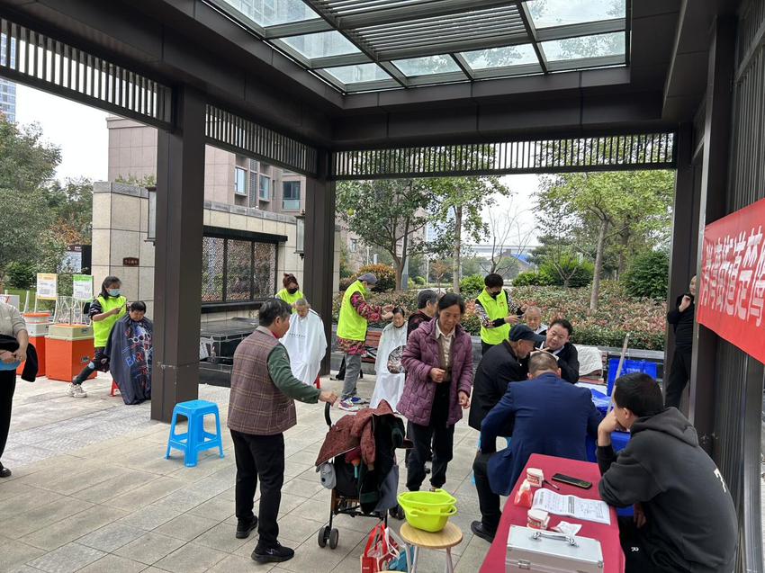 活动现场,医疗团队为居民提供一站式健康服务:基础体检区免费测量血压、血糖及糖化血红蛋白,同步开展家庭医生签约咨询;慢性病管理专区针对高血压、糖尿病等常见病提供个性化预防指导;中医与公共卫生宣传区通过现场演示、手册发放等形式普及养生知识;眼科、口腔科医生为居民筛查视力、检查口腔,并科普爱眼护眼、正确刷牙等实用技巧。此外,绝妙美容美发学校的志愿者为老年居民提供免费理发服务,用“头等大事”传递温情。