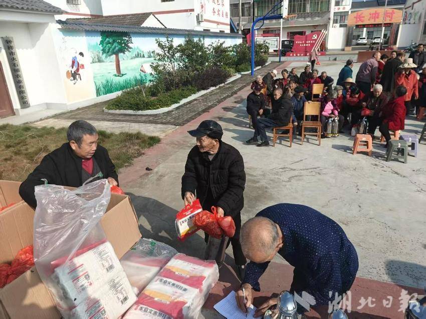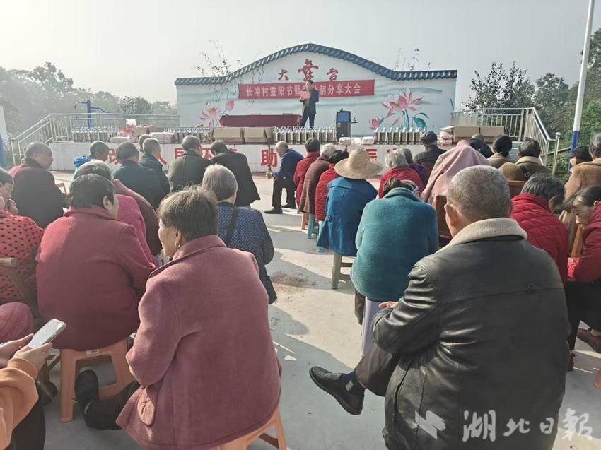 湖北日报客户端讯(通讯员冯亚萍)金秋十月,重阳又至。近日,钟祥市双河镇长冲村新时代文明实践站联合村办企业火石铺农业有限公司与村老年协会,共同开展"网格连心·重阳敬老"活动,为全村120名70岁以上老人送去节日温暖。