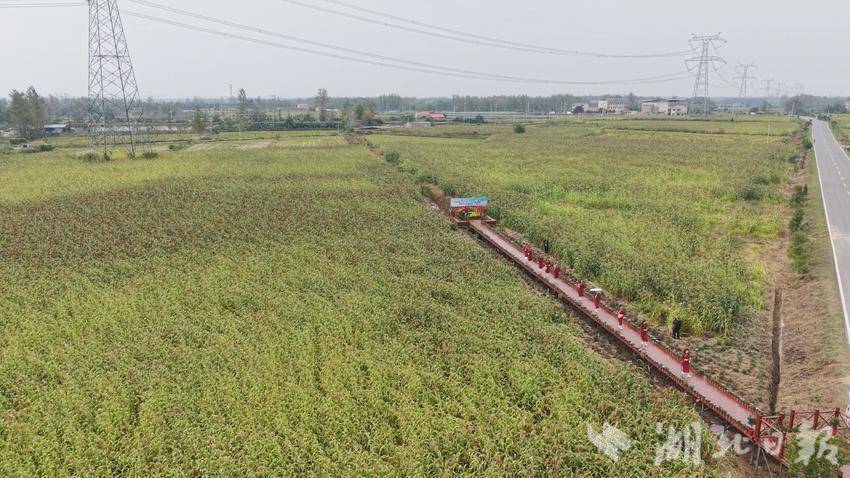 “我从2022年开始在汪集街流转土地,如今在汪集已经有1万多亩土地了。每年到了油菜花开、高粱红的时候,都有附近的村民或者城市居民过来拍照打卡。为了方便他们赏花赏景,我想着要建设一个打卡点,后续我们还会继续出资完善打卡点的基础设施。”站在栈道上,武汉莱之丰生态农业有限公司总经理曹仲平笑着说道。