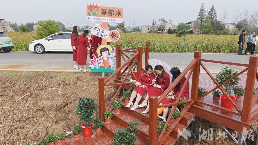 “这里靠近禾唱星野景区,文旅基础好,又临近主干道,交通便利,眼下马上高粱又要迎来丰收季,我们再三考虑,最终选择这片高粱地。”汪集街农业农村办负责人余志刚介绍道,街道从10月初开始筹划建设打卡点,近日,整个打卡点已经基本建设完毕,陆陆续续有游客来观光拍照。