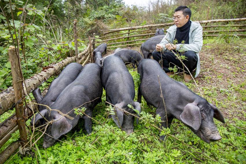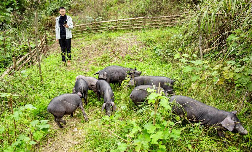 湖北日报客户端(通讯员陈小林、胡安民)10月31日,笔者驱车前往利川市忠路镇黄桶岩村的大山深处,只见一位文质彬彬的年轻人,正在山上放养着一群恩施黑猪。经仔细打听,他名叫向治鹏,是湖北省九头鸟生物科技有限公司总经理、高级畜牧师、利川市“土家腊肉制作工艺”市级代表性传承人。