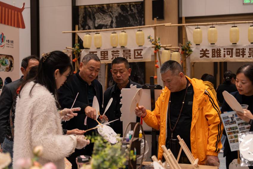 此次襄阳之行,是乘着高铁游当阳暨城市品牌推介活动的“首秀”。年内沿江高铁武宜段开通,呼南高铁、沿江高铁在当阳并线设站,届时当阳至襄阳的出行时间将缩短至1小时内,这标志着两地文旅合作将迈入“同城时代”。本次活动共邀请来自襄阳本地的90余家旅行商代表、襄阳市旅游协会、旅行社协会、自驾俱乐部协会及媒体代表参加,共商合作、共话未来。现场精心策划了欢迎晚宴、主题推介与工农旅市集“三个一”系列环节,全方位展示当阳魅力与诚意。欢迎晚宴气氛温馨融洽,两地嘉宾畅叙合作,共谋发展;品牌推介环节则通过rap秀、情景剧和文旅线路发布等,生动呈现了当阳深厚的人文底蕴和丰富的旅游资源;一旁的文旅市集更是人气高涨,各类当阳特色产品为与会嘉宾带来沉浸式体验,真切感受当阳风情。