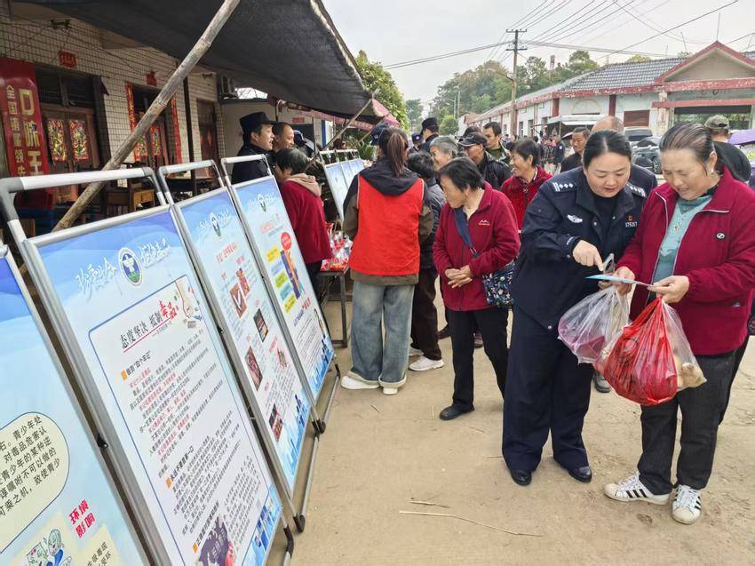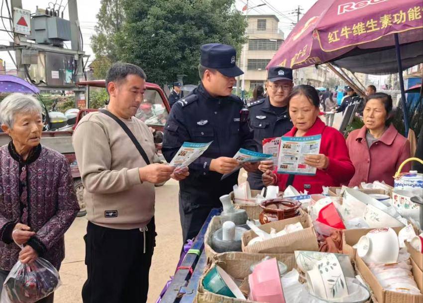 湖北日报客户端讯(通讯员 胡雪峰)11月3日的淋山河集市,叫卖声、讨价还价声此起彼伏,人流挤得满满当当。赶大集的乡亲们没想到,这天多了个特别的“摊位”——淋山河派出所的民辅警和禁毒社工带着“健康人生,绿色无毒”的主题,把禁毒知识打包成“特殊商品”,直接送到了大家眼前。