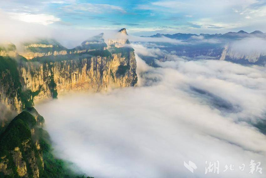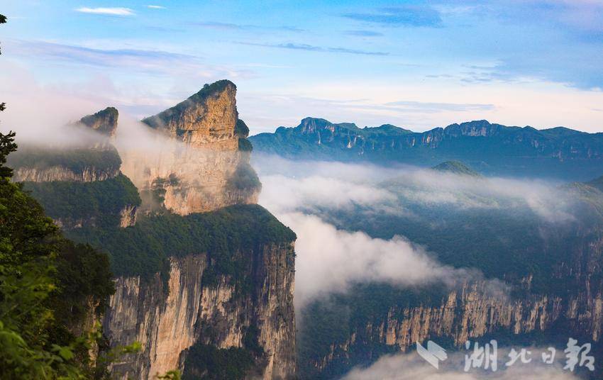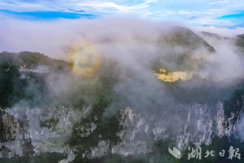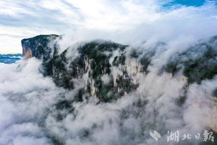 湖北日报客户端讯 (通讯员 李传书、杨翠)位于利川东端的朝东岩,绝壁万仞,直插云天,是利川和恩施的分界线。朝东岩之外属于恩施范围,之内属于利川范围。以前这一壁悬崖,将恩施和利川隔绝开来,交通不便。自2001年朝东岩隧道打通以后,利川至恩施的东大门就洞开了,沉寂了数万年的朝东岩从此热闹非凡,朝东岩的美景也有幸淋漓尽致地给人们奉献了美美的视觉大宴。