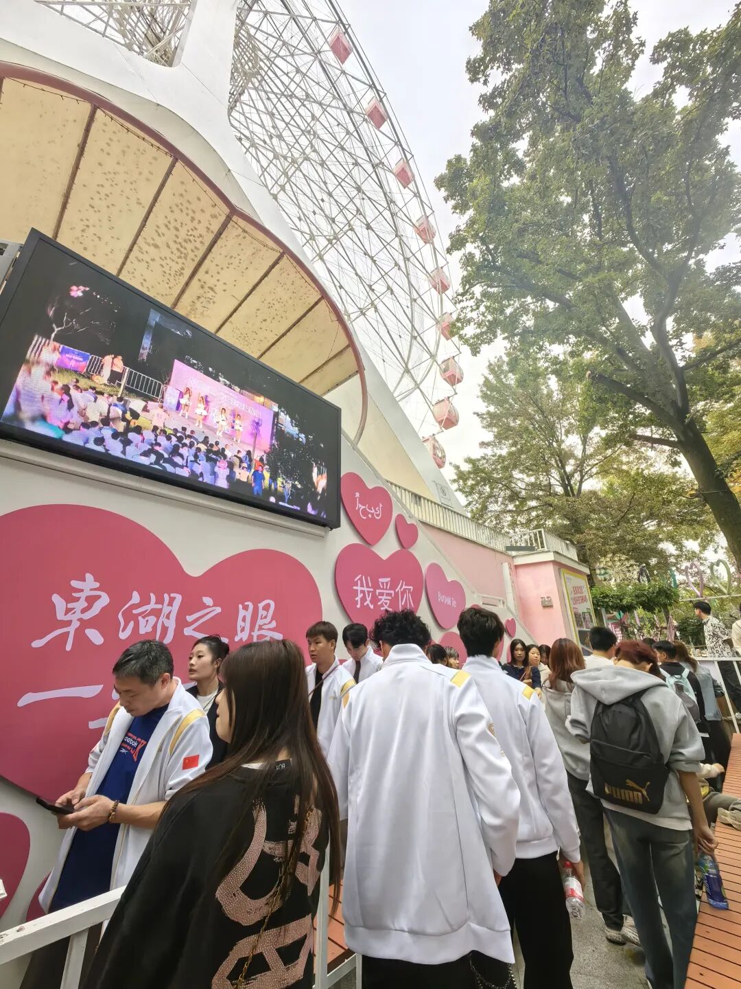 随后,队员们来到磨山景区“东湖之眼”摩天轮。随着轿厢缓缓升高,东湖全景尽收眼底:蜿蜒绿道环抱湖岸,岛屿点缀其间,远山如黛、近水含烟。球队队长16号周正感叹:平时专注于赛场拼搏,此次登高俯瞰,才更深切地感受到东湖作为“城市绿心”的自然之美与人文之韵。