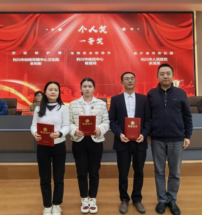 赛中,利川代表队凭借扎实理论基础、精湛实操技能以及从容高效应急处理能力,从众多参赛队伍中脱颖而出,成功斩获团队一等奖及包揽全部个人项目一等奖。其中,市人民医院的余清源在医疗废弃物处置、市疾控中心的杨雪纯在生物安全柜操作、市柏杨坝镇卫生院的牟利彬在穿脱防护服项目中分别夺冠。