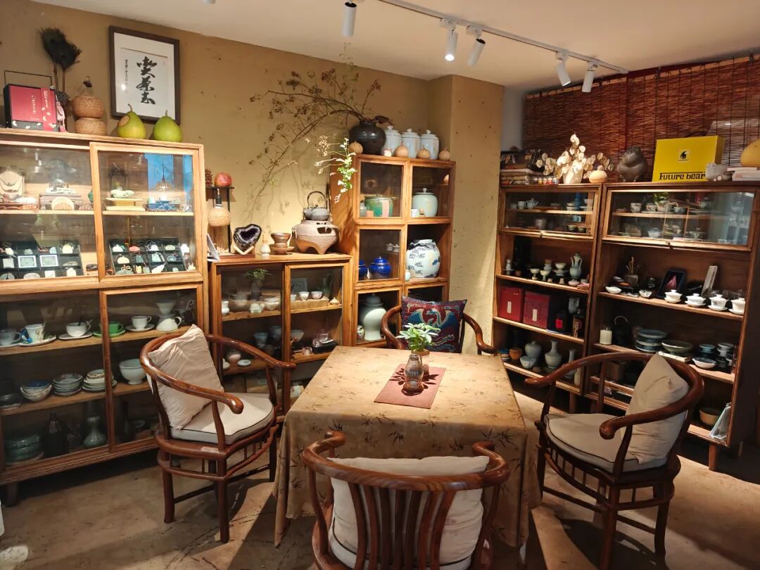 推开门扉,真像闯进了楚人的雅致书房——朱漆纹饰的茶盘在暖光下泛着温润光泽,复刻楚墓出土的古茶器整齐陈列于木柜中,身着浅素传统服饰的店员正专注温壶备茶,空气中萦绕的淡淡茶香里,似裹着《楚辞》的浪漫余韵,瞬间将人带入千年荆楚的雅致氛围,连空气都带着古雅的味道。