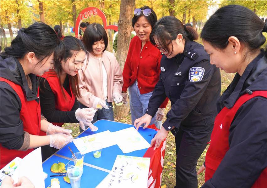 最受欢迎的当属银杏叶拓印画创作环节。游客们手持新鲜银杏叶,蘸取颜料在白纸上轻轻拓印,随后认真书写“金叶拼盾牌,毒品远离我”“银杏染秋意,禁毒守初心”等禁毒标语。一幅幅充满创意的拓印画,成为传递禁毒决心的特殊载体。活动中,大家还积极拍摄作品及仿真毒品展示场景,配文“我用银杏画禁毒,共筑无毒风景线”转发朋友圈,以社交传播的方式让禁毒声音走进更多家庭。