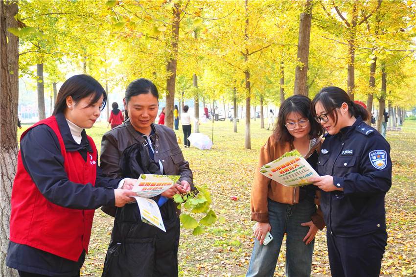 湖北日报客户端讯(通讯员王紫微)金秋时节,谷城县城关镇茶庵村的银杏林里满目金黄,落叶纷飞如蝶舞,成为赏秋热门打卡地。为让禁毒理念融入群众日常生活,进一步扩大禁毒宣传覆盖面,11月4日,县禁毒办在茶庵村银杏林开展“金叶漫舞话禁毒,全民携手筑防线”主题宣传活动,以沉浸式体验让禁毒知识深入人心。