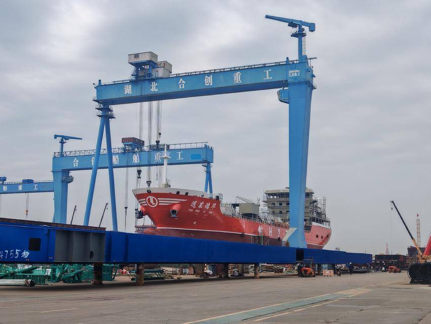 “‘十四五’期间,湖北合创重工乘着长江经济带、绿色智能船舶的政策东风,实现跨越式成长。2021至2025年,公司产值由5.7亿元增至30亿元,五年增长了5倍;手持订单从不足5亿元跃升至60亿元,新能源船舶占比超90%,排产已至2027年。”11月4日,湖北合创重工执行董事王伶俐介绍说,“期间,我们累计交付LNG、甲醇、电池动力船14艘,全球首艘万吨级甲醇双燃料散货船、23,500吨化学品船等高端产品相继出厂,外贸订单突破36亿元,船舶出口南美、中东、欧洲。”