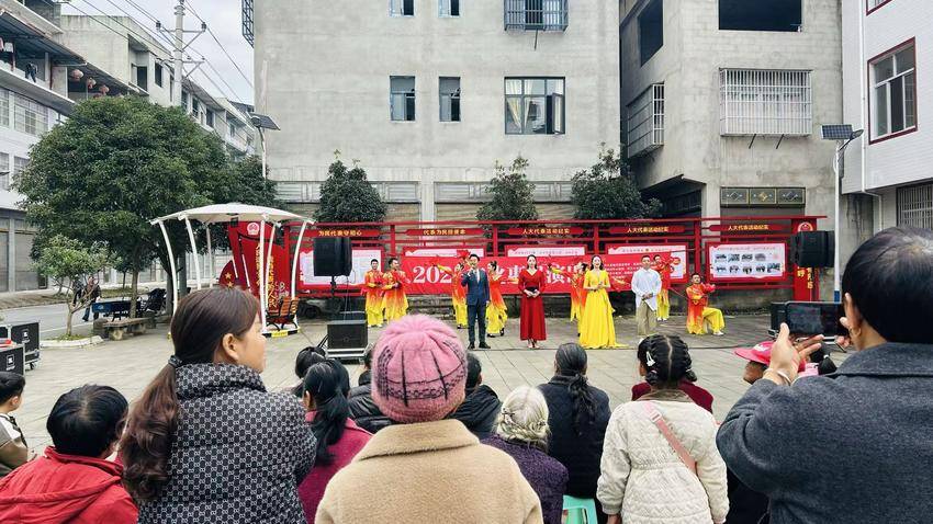 演出现场,各年龄段的乡亲们都沉浸其中,时而跟着节奏打拍,时而因精彩桥段开怀大笑,不少观众举起手机,记录下这难忘的瞬间。
