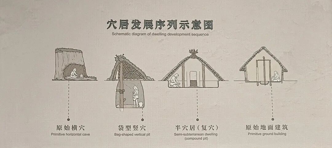 对半坡遗址聚落群的研究中,可以梳理出清晰的“穴居序列”,即原始横穴——袋型竖穴——半穴居——原始地面建筑,是一个极为缓慢而复杂的演变过程。